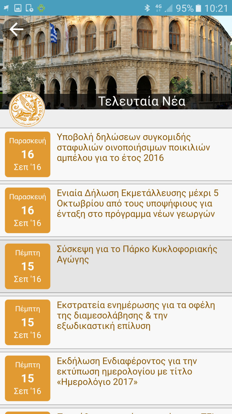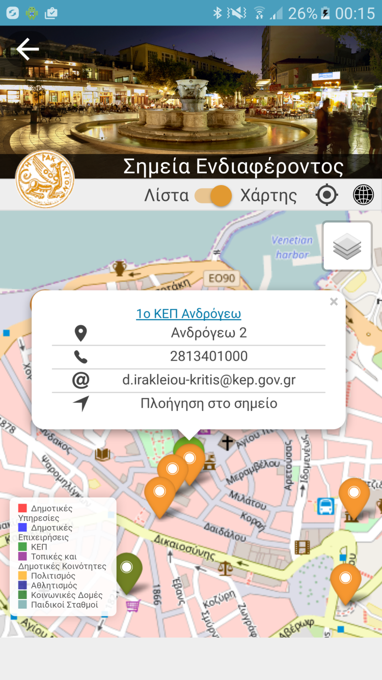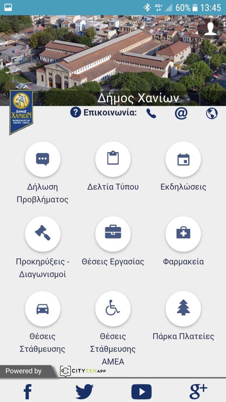 - Push Notifications (ενημερώσεις στο κινητό για έκτακτα συμβάντα, Δελτία τύπου κ.α.)